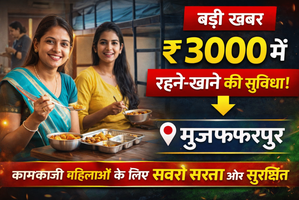 मुजफ्फरपुर से कामकाजी महिलाओं के लिए एक बड़ी राहत भरी खबर सामने आई है। अब सिर्फ ₹3000 में रहने और खाने की सुविधा उपलब्ध कराई जा रही है, जो शहर में काम करने वाली महिलाओं के लिए बेहद फायदेमंद साबित हो रही है।