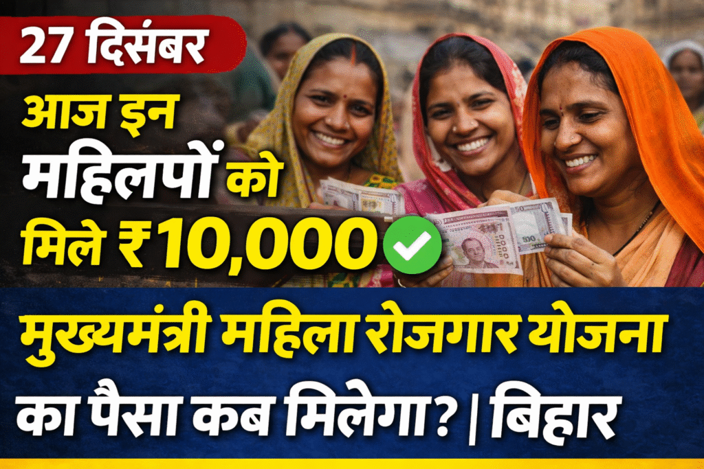 बिहार में महिलाओं को आत्मनिर्भर बनाने के लिए सरकार द्वारा चलाई जा रही मुख्यमंत्री महिला रोजगार योजना एक महत्वपूर्ण पहल है। 27 दिसंबर को कई महिलाओं के खातों में ₹10,000 की राशि ट्रांसफर होने की खबर सामने आई है। ऐसे में लाखों महिलाओं के मन में सवाल है कि पैसा किसे मिला, किसे मिलेगा और कब मिलेगा?