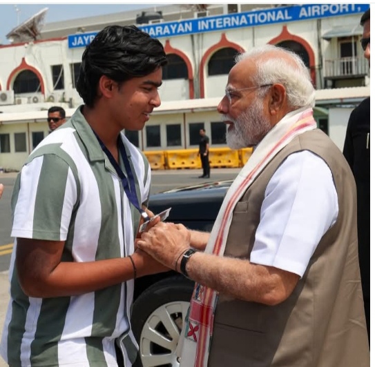 उभरते हुए क्रिकेटर वैभव सूर्यवंशी से पटना एयरपोर्ट पर मोदी जी ने की मुलाक़ात